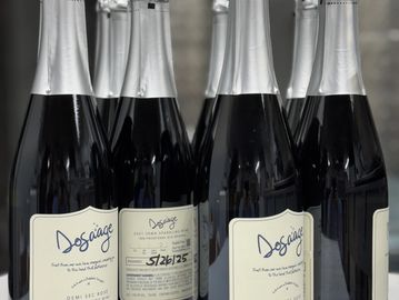 First disgorged May 26, 2025. This pale pink demi-sec charms with aromas of honeysuckle, ripe peach, and candied cranberry. Lively bubbles and a touch of sweetness create a luscious, refreshing and lingering finish—perfect with brunch, fresh fruit, taco pizza, the front porch swing or celebratory toasts to life in general.